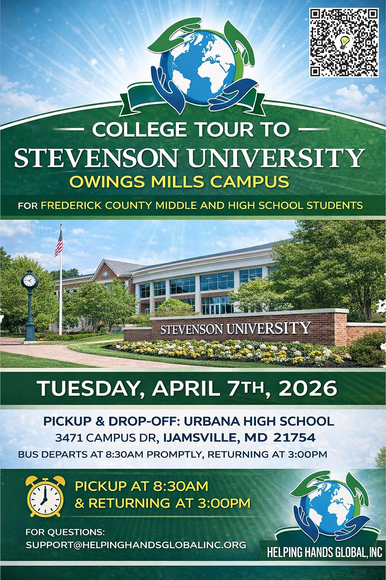Helping Hands Global, Inc. USA mission includes taking juniors and seniors in high school on college tours to ease some of the stress on students and parents/guardians go through when it's time for college application season. This mission is made possible by a grant from the Ausherman Family Foundation.